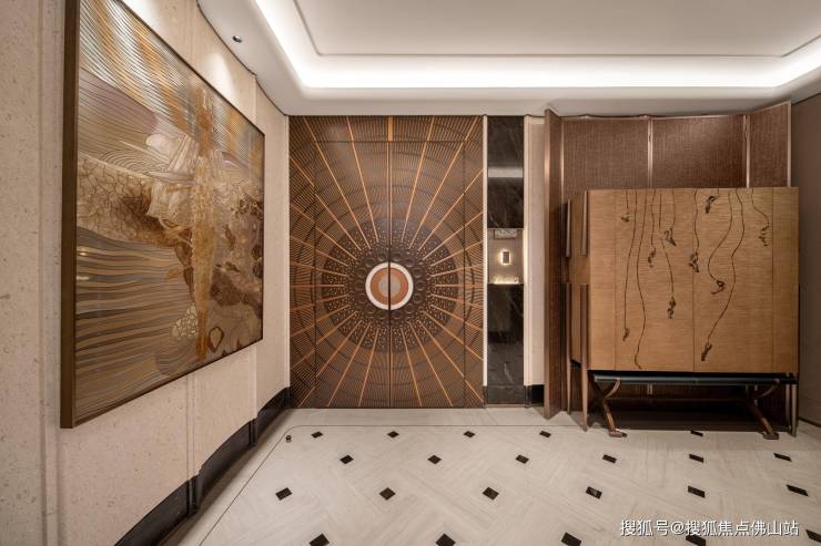 Ø 项目打造内外双玄关双重归家仪式感:约9㎡独立私属电梯厅,入户再设约7㎡玄关过渡,而且外玄关和内玄关通铺“天瓒”定制地砖拼花,更具有私享入户的归家体验。