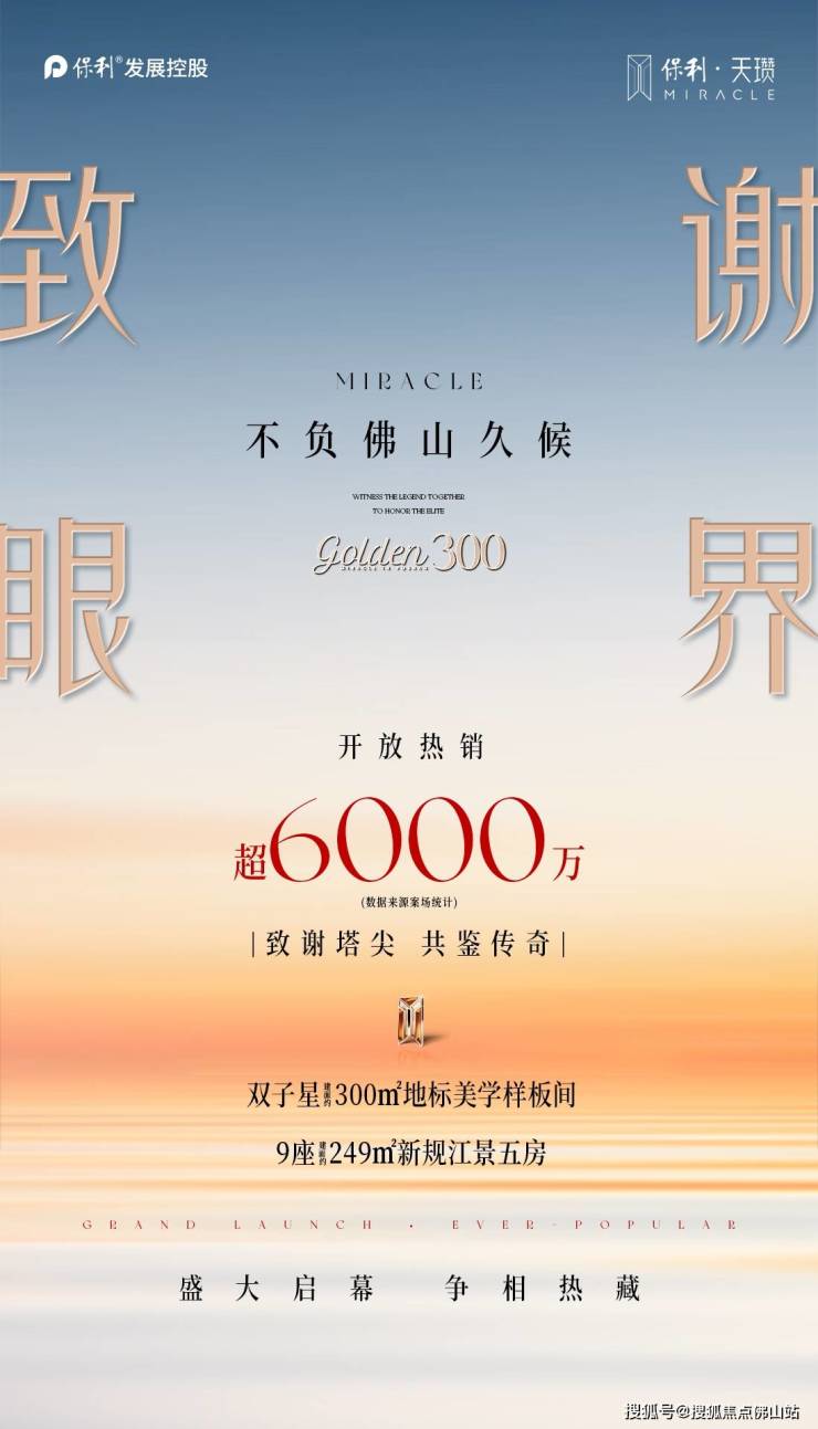 千灯湖城市地标封面之作——保利天瓒双子星300㎡地标美学样板间及9座249㎡最强新规江景五房实景样板间4月18日已正式亮相,其中249㎡未开板房前就已经热销超1亿,从热销可以看出其产品实力,这次正式开放实景板房更是瞬间引爆佛山高端楼市,成为全城塔尖圈层聚焦的核心焦点,可以说是今年上半年现象级豪宅盘。