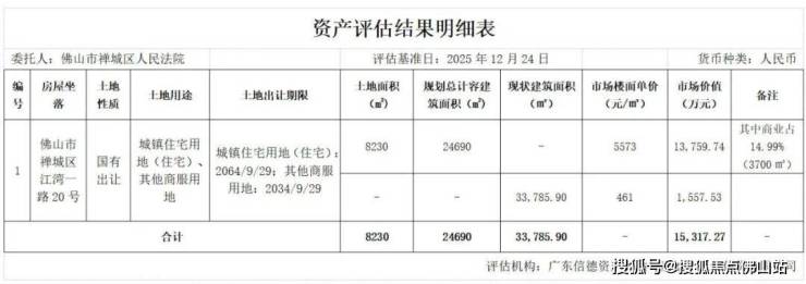 经评估,该土地使用权价值约13759.74万元,楼面地价为5573元/㎡,建筑物价值约1557.53万元,单价为461元/㎡。