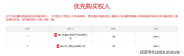 需要特别指出的是,该土地的使用权归佛山市嘉友房地产开发有限公司、佛山市力源企业有限公司共有,且二者对本次拍卖均享有优先购买权。