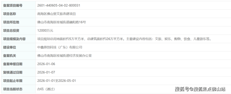 近日,南海区佛山里文旅改建项目正式通过备案。
