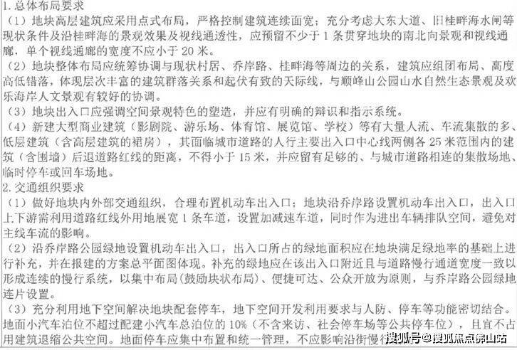 文件还指出,项目高层建筑应采用点式布局,且建筑首层按≥40%的比例设置架空空间,沿乔岸路及桂畔海的外立面不得设置附着物。