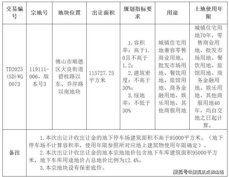 其中佛山市顺德区德睦置业有限公司以超15亿夺得大良街道碧桂路以东、乔岸路以南地块,折合楼面价约1.1万/㎡。