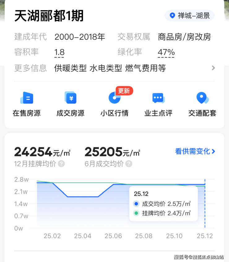 其中天湖郦都、环湖花园楼龄均超20年,但均价相差较大。