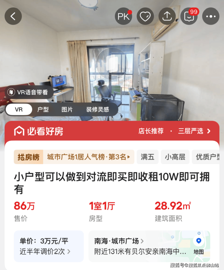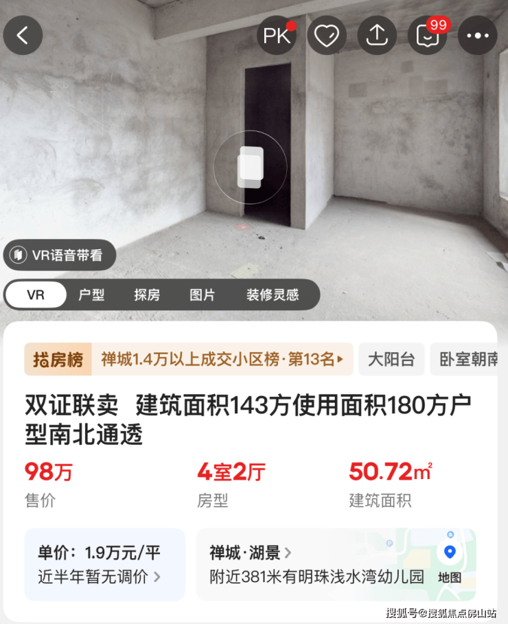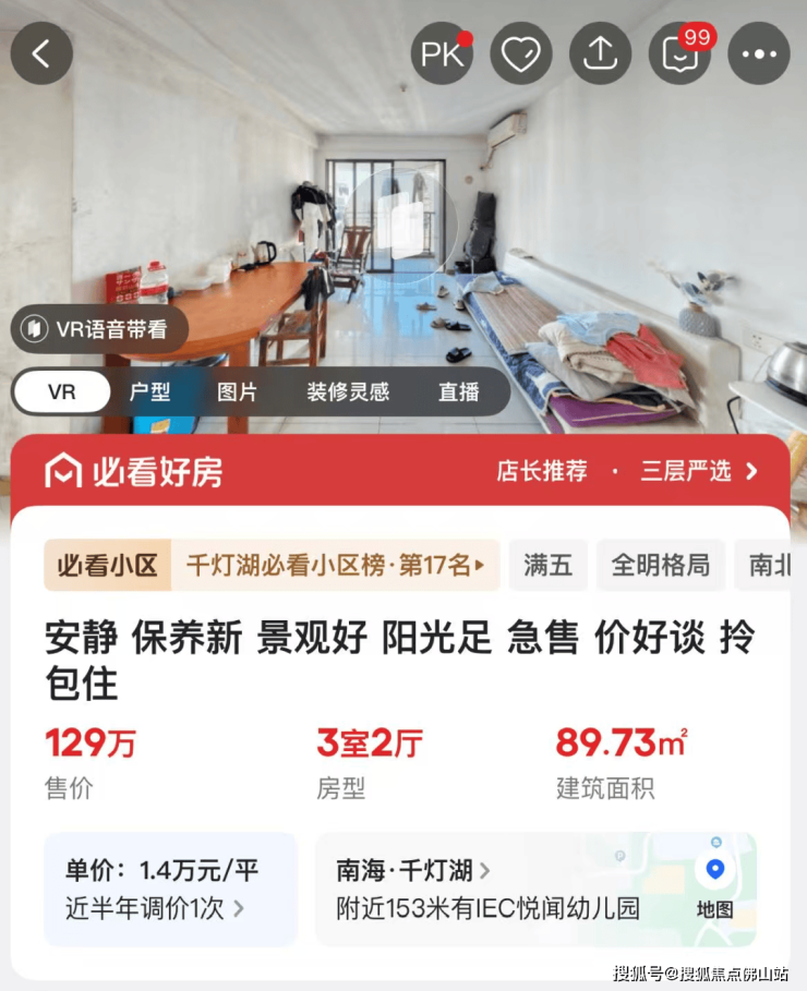 其次则是南海颐景园,挂牌户型建面约62-297㎡,总价115万起。
