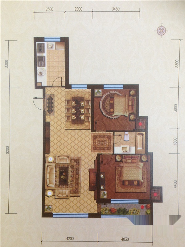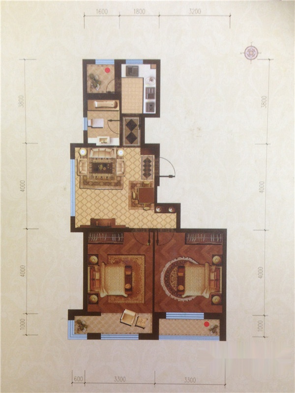 2室2厅1卫-D-2户型2室2厅1卫88.99㎡