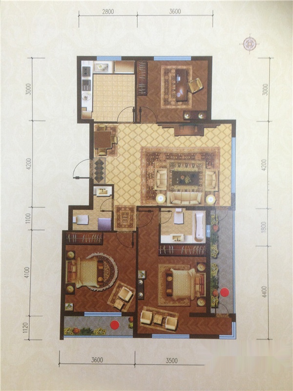 2室2厅1卫-D-3户型2室2厅1卫96.97㎡
