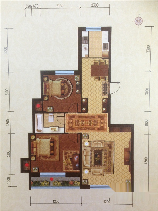 2室2厅1卫-D-4户型2室2厅1卫110.49㎡