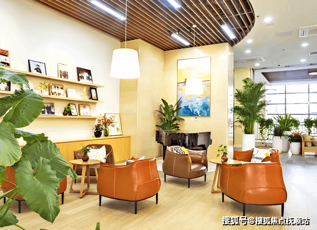 院区总占地2.4万平方米,规划床位550张,采用无障碍园林设计,绿化率达52%。独立庭院与休闲步道贯穿其中,形成“离尘不离城”的天然疗愈环境。公共区域配备1000余平方米专业康复中心,涵盖评估区、理疗区、运动治疗区等五大功能分区,并设有咖啡书吧、钢琴角、书画室等文化活动空间,满足长者医疗、康复与社交需求。