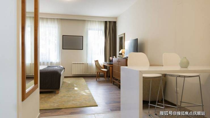 光大汇晨北京老年公寓(北七家)总建筑面积3.9万平方米,规划床位745张,按健康状态分区布局:自理照护专区(1-2层)设床位200张,配备适老化家具与智能护理床,走廊宽度达1.8米,轮椅通行无阻;失能失智专区(3-4层)床位300张,采用智能天轨移位系统与防褥疮气垫床,配置怀旧治疗角辅助认知训练;术后康复专区(5层)床位245张,涵盖心肺康复室、骨科康复室及神经康复室,配备等速肌力训练仪与情景互动训练系统。家庭套房含独立客厅、书房与温泉入户,满足多元化需求。