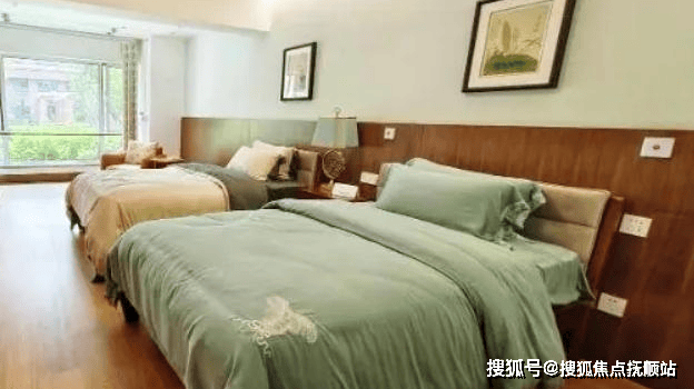 公寓建筑共15层,占地面积30000平方米,配备500张床位。内部设计注重适老化:无障碍通道、防滑地板、紧急呼叫系统等安全设施全覆盖;房间内配置独立卫生间、空调、电视等现代化设备,公共区域设健身房、图书馆、棋牌室等休闲空间。单人间占比30%,配备电动护理床、防滑地胶,支持家属通过APP远程查看健康数据;双人间与多人间占比50%,采用防滑地板、圆角家具及无障碍卫生间,床头安装毫米波雷达跌倒监测仪,医护配比达1:3。失智专区独立设置50张床位,采用“怀旧疗法”设计,配置老式杂货铺、邮局场景,房间门采用非对称布局以降低定向障碍风险。全院公共区域配备防滑地面、中央新风系统,PM2.5日均值≤20μg/m³,淋浴区设可折叠坐浴椅,走廊宽度达2.1米,确保轮椅通行无阻。此外,公寓投入500余万元进行适老化改造,包括智能手环实时采集健康数据、电子围栏防走失系统及语音控制灯光/空调等智能化设备,全面提升居住安全性与舒适度。