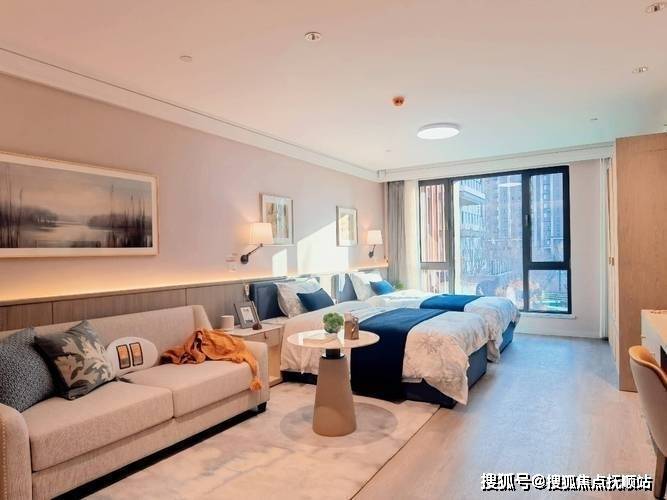 社区总建筑面积7.8万平方米,规划床位近1000张,涵盖单人间、双人间及家庭套房三大房型,面积从35平方米至120平方米不等。单人间配备独立卫浴、观景阳台及智能护理床,双人间采用分床设计并设置隐私隔断,套房则配备独立客厅、书房及双卫浴,满足不同家庭的居住需求。