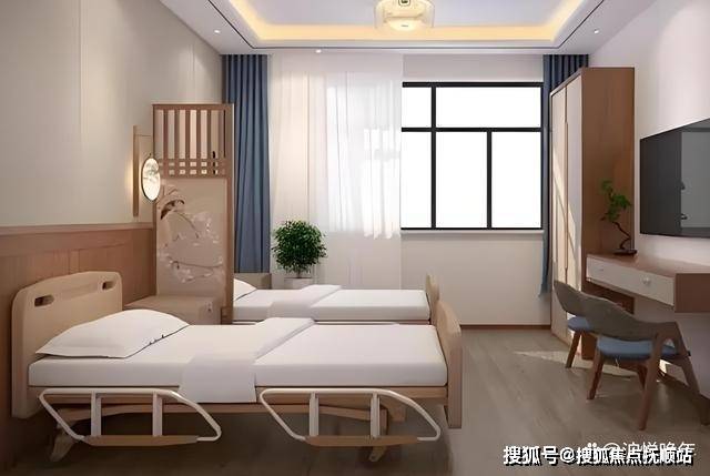房间标配:适老化护理床、智能呼叫系统、恒温卫浴、储物家具、防滑地面。