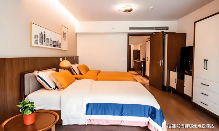 社区总建筑面积28.4万平方米,规划床位超2000张,分三期开发,一期开放800张床位。房型涵盖单人间、双人间、套房及活力公寓、护理公寓、亲子公寓三大产品体系,满足不同健康状态长者的居住需求。房间内全屋采用防滑地胶、圆角家具、感应夜灯,淋浴区配置L型扶手、恒温花洒,床头配备毫米波雷达跌倒监测仪,异常离床报警准确率达99.9%。公共区域设置无障碍通道、电梯、扶手,并配备智能定位手环、电子围栏系统,确保行动不便长者的安全。