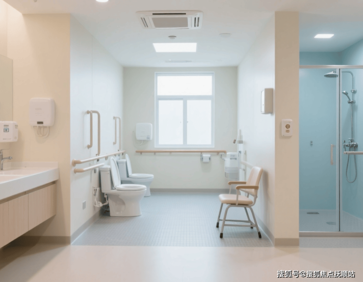 驿站全域按照高龄、失能、认知障碍长者需求完成适老化改造,实现无障安全与舒适体验双重保障。公共区域及居室均安装防滑耐磨地板、圆角防撞家具、全通道无障碍坡道,降低长者行动风险。走廊、卫生间、卧室全域安装稳固扶手,配合智能感应夜灯,夜间行动安全无忧 🚿。