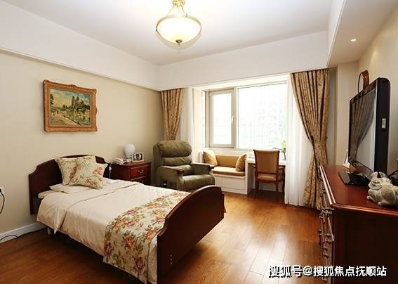 机构总建筑面积2.7万平方米,分为南楼(13层)与北楼(4层),共设274个房间,提供330张床位。居住空间采用国际适老化标准:防滑地砖、圆角家具、智能马桶、低位开关等细节全覆盖;单人间配备独立卫浴、新风系统与紧急呼叫装置,双人间设双向扶手淋浴座椅,套房型更增设独立客厅与厨房。公共区域与居住空间面积配比达1:1,一层设400平方米休闲娱乐区,涵盖书画室、影音厅、茶艺室等功能空间,南北楼通过风雨连廊无缝衔接,形成无障碍通行网络。
