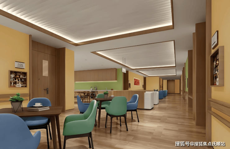 居住空间:单人间面积28-40㎡,配备独立卫浴、智能护理床及毫米波雷达跌倒监测系统;双人间面积35-50㎡,采用“双床分控”设计,共享会客区与适老化厨房;家庭套房面积60-80㎡,提供两室一厅与独立厨房,支持三代同堂短期居住。所有房间均配备防眩光照明、可升降餐桌、圆角防撞家具,卫浴间安装L型安全扶手与恒温花洒。