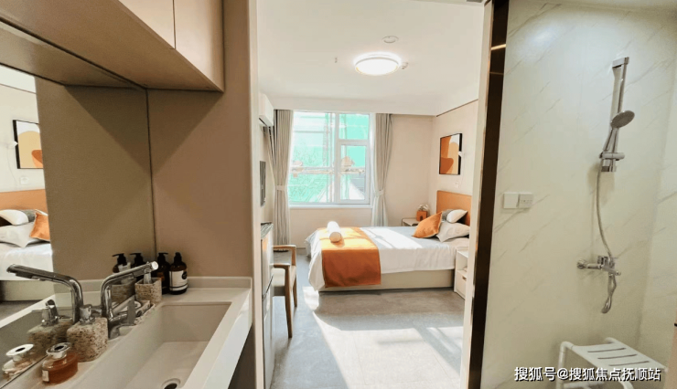 园区占地面积1.4万平方米,总建筑面积1万平方米,规划床位212张,涵盖单人间、双人间及一室一厅套间三种主力房型。建筑风格保留原干部疗养院的典雅气质,米黄色外墙与深灰色屋顶相映成趣,内部装修采用E0级环保板材与无醛胶黏剂,确保空气质量。房间内配备智能马桶、紧急呼叫按钮、圆角家具,卫生间安装防滑扶手与恒温淋浴系统,所有门窗均加装低位可视门铃与安全锁扣。公共区域设有4200㎡生态花园,种植药用植物与芳香植物,支持园艺疗法;楼内“四季疗愈花园”配置驱蚊植物与多感官刺激装置。医疗康复区配备500㎡康复中心,内置三维步态分析系统、平衡训练仪,与北京宣武医院共建个性化康复方案;文娱活动区配置图书阅览室、书画室、音乐室、舞蹈室,年均举办书法班、绘画班、音乐课及智能手机培训超200课时。