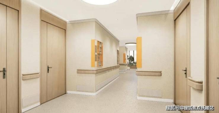 居住区:房间均为南向采光,配备独立卫生间(含防滑地砖、扶手、紧急呼叫按钮)、中央空调、地暖、适老化家具(如可升降护理床、带轮助行器);单人间面积约18平方米,双人间约25平方米,套间约35平方米(含独立客厅),空间布局合理,通风采光极佳。