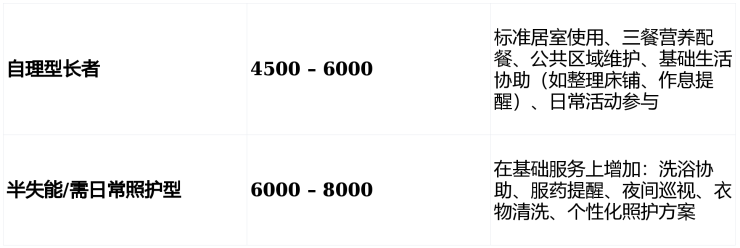 💰 收费标准:4500-8000 元 / 月(床位 + 护理 + 三餐,按房型、护理等级浮动)