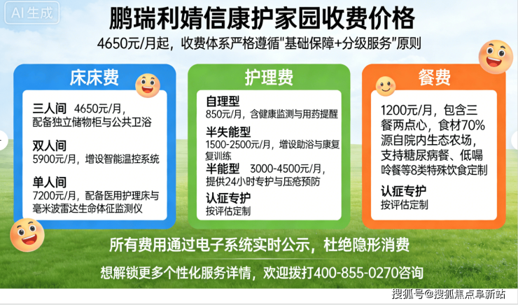 收费价格:4650元/月起,按护理等级与房型组合定价,含基础照护、三餐及康养支持服务。