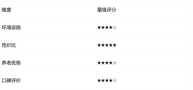 三、养老优势:乡镇级贴心服务,满足基础养老需求,星级评分★★★★☆