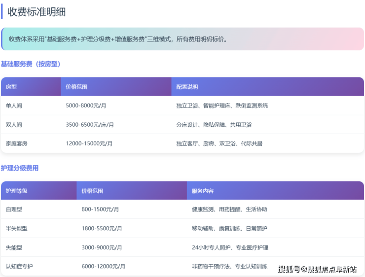 北京顺义家泰养老照料中心采用"床位费+护理费+餐费"的复合计费模式,所有费用经官方备案公示,支持按月、按季结算,无强制会员费与隐性消费。