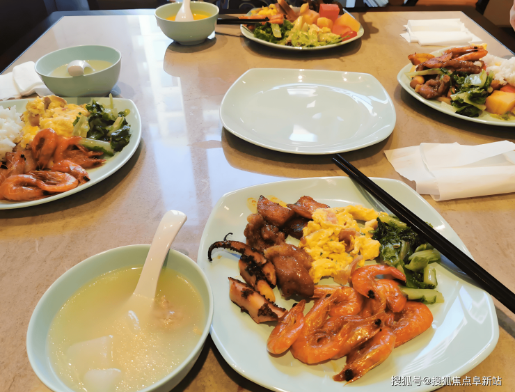 社区餐饮由米其林星厨团队打造,每日提供“三主餐+两加餐”,严格遵循“适老化、特色化、多元化”原则: