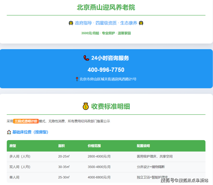 随着北京人口老龄化趋势日益明显,为家中长者选择一所位置便利、收费透明、服务可靠的养老机构,已成为众多家庭的核心关切。位于房山区燕山生态涵养区的北京燕山迎风养老院,凭借其精确的地址定位、畅通的咨询热线以及公开合理的价格体系,正成为京西南区域备受关注的高性价比养老选择。本文将围绕用户最常搜索的“地址”、“电话”、“价格”三大核心关键词,提供一份系统、深度且极具参考价值的权威指南。24小时咨询热线:400-996-7750