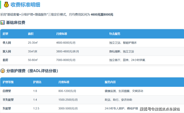 价格普惠性:4600-8000元/月透明定价,打破"核心区养老价高"刻板印象