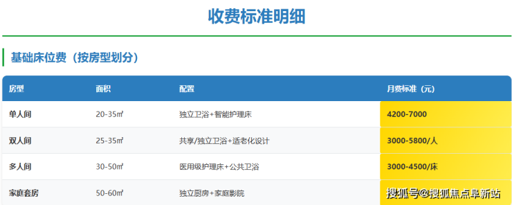 自理型:800-1200元/月,侧重健康监测与活动组织