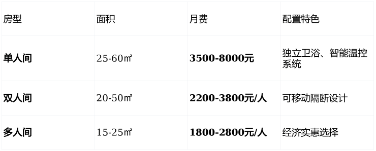 公寓总建筑面积16万平方米,规划床位超5000张,分为四大功能区: