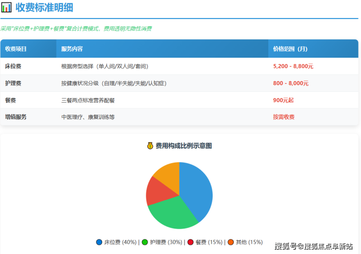 泰和·睿园养老公寓采用"基础服务费+护理分级费+增值服务费"的复合计费模式,月费区间为3500-20000元,具体收费标准如下: