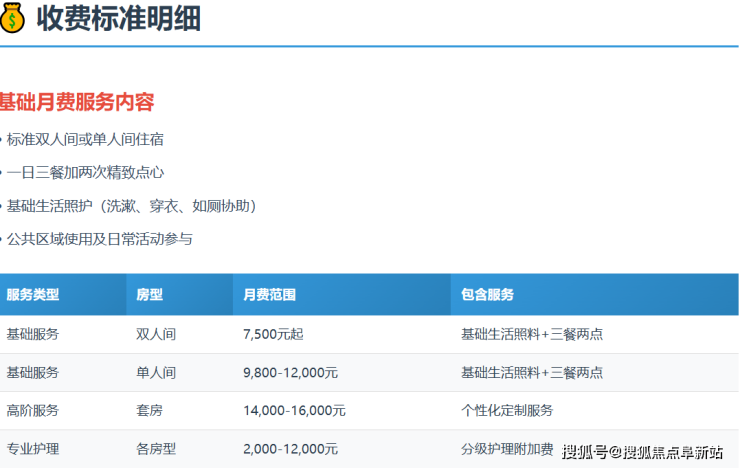 综合示例:一位选择单人房型,且经评估需要半失能照护的长者,月总费用可能在12000元至17000元左右(具体需以实际评估和房型定价为准)。
