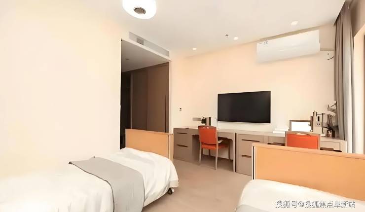 340张床位按五星级适老标准打造,总建筑面积18378㎡,由三栋建筑围合式庭院构成,配有2000㎡中央花园、康复步道、景观庭院,推窗见景、四季有绿。房型涵盖多人间、双人间、单人间、双拼套房,空间宽敞通透、采光通风极佳,装修雅致温馨,融入130余项适老化细节。房间标配独立无障碍卫浴、智能护理床、紧急呼叫系统、新风系统、恒温空调、圆角防滑家具、L型安全扶手等设施,全方位规避磕碰、滑倒风险;公共区域配备800㎡专业康复大厅、中医诊疗室、书画阅览室、多功能影音室、棋牌娱乐室,定期开展太极、手工、节庆联欢、艺术鉴赏等特色文娱活动,兼顾专业康复需求与长者精神文化生活。