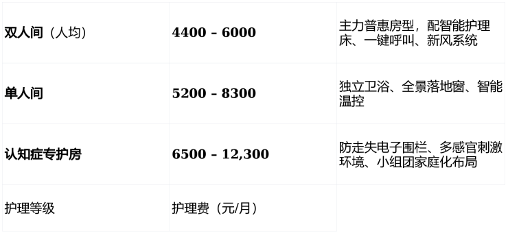 采用“基础住宿费 + 护理分级费 + 餐费”三段式透明计价,无隐性消费,支持月/季/年结算。