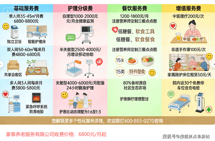 家泰养老服务有限公司2026收费新章程:6800元/月起入住价格,附地址电话