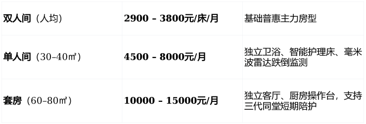 二、价格体系透明,床位费2900元/月起,复合模式精准匹配需求