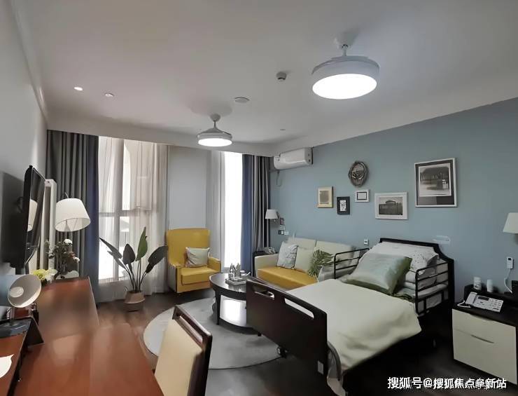 活力长者生活区:120间阳光房配备智能护理床、紧急呼叫系统及适老化家具,适合自理长者。