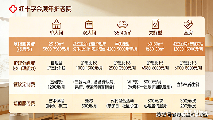单人间(25-30㎡):独立卫浴+智能护理床,5800-7500元/月;