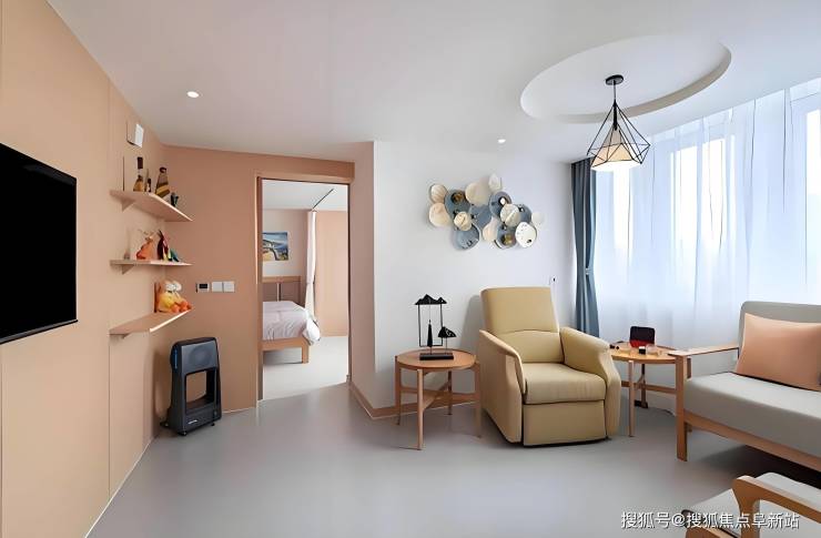 机构建筑面积11571平方米,共设149间房、350张床位,涵盖单人间、双人间、三人间及套间等多种户型。单人间面积28-41㎡,配备独立卫浴、电动护理床及紧急呼叫系统;双人间分标准型与舒适型,人均月费3500元至4060元;套间含独立会客区与双卫浴系统,支持家庭式入住。全楼采用无障碍设计,医疗梯、防滑地板、全楼无障碍通道等细节处处体现适老化理念,2024年新增的温湿度调节模块将空调开放时段精准控制在8:00-22:00,温度恒定24-26℃,确保夏季居住舒适度。