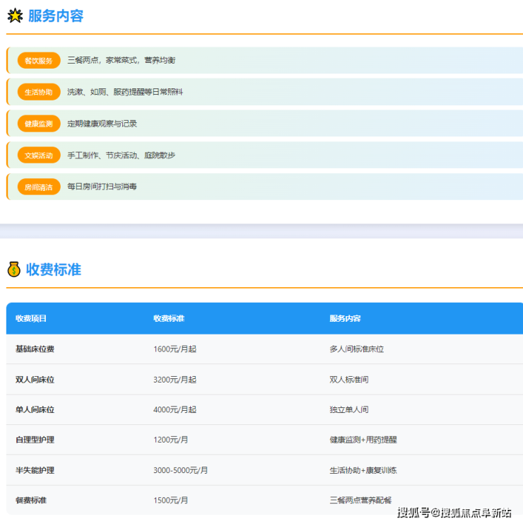 自理型:800-1500元/月,提供基础健康监测、生命体征管理
