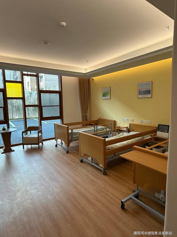 机构总建筑面积约1万平方米,规划床位255张,涵盖单人间、双人间及家庭套房三大房型。单人间面积40㎡,配备独立卫浴、智能护理床及毫米波雷达睡眠监测仪,床头集成环境调节面板,支持语音控制;双人间面积50㎡,设独立衣柜、护理床及吸氧设备,满足半失能长者的需求;家庭套房两室一厅布局,含独立客厅、厨房及双卫浴,配备私人医生与营养师定制服务,适合高端家庭选择。全院采用防眩光照明,走廊宽度达2米,满足双轮椅并行;浴室安装恒温花洒与折叠助浴椅,地面采用防滑系数达R11的PVC地胶,确保长者居住的安全与舒适。
