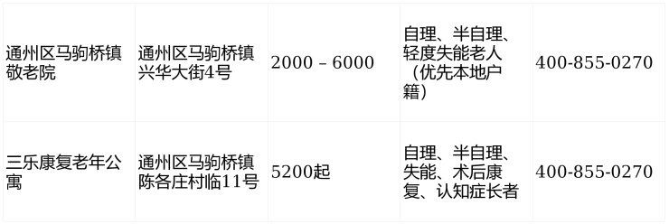 一、通州区马驹桥镇敬老院