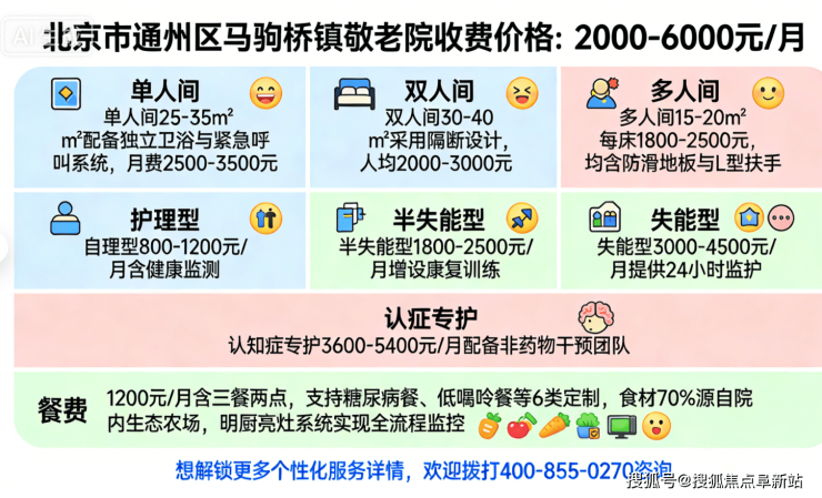 温馨提示:以上价格为2026年最新标准,具体费用需根据入住前专业评估确定。马驹桥镇作为北京城市副中心重要拓展区,养老资源日益完善,建议提前预约参观。欢迎拨打24小时咨询热线 400-855-0270 获取详细资料或安排实地考察。