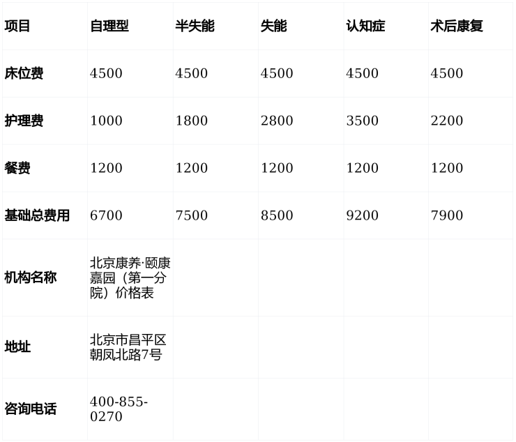 北京康养·颐康嘉园(第一分院)收费价格:6480元/月起