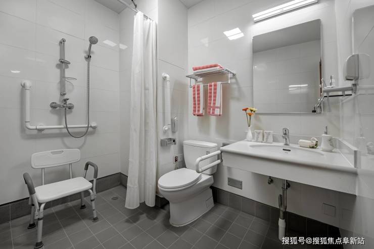 居住空间:单人间(35-45㎡)、双人间(25-30㎡)及家庭套房(60-80㎡)均配备独立无障碍卫浴、智能护理床、紧急呼叫系统及防滑地胶,家具边角圆润处理,入户门设置双猫眼,全楼铺设防滑系数≥0.95的PVC地胶。