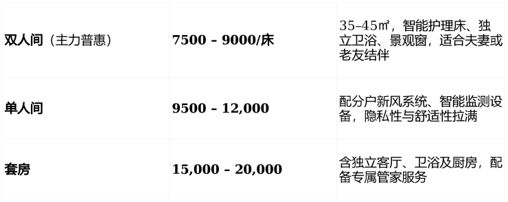 自理型:800–1500(含健康监测、文娱活动)