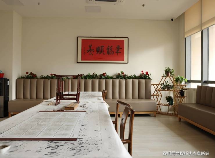 (二)服务与环境融合:每日组织健康操、手工、书法、节气茶话会等活动;庭院设有阳光廊道与休憩花园,室内公共区域温馨明亮,营造“家+社区”的融合氛围。