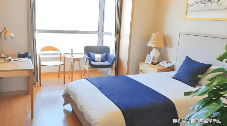 (一)全屋适老化结构:房间采用无障碍通行设计,配备防滑地胶、圆角家具、智能紧急呼叫系统、独立卫浴、恒温新风及遮光窗帘,床体高度可调,兼顾安全与自主性。